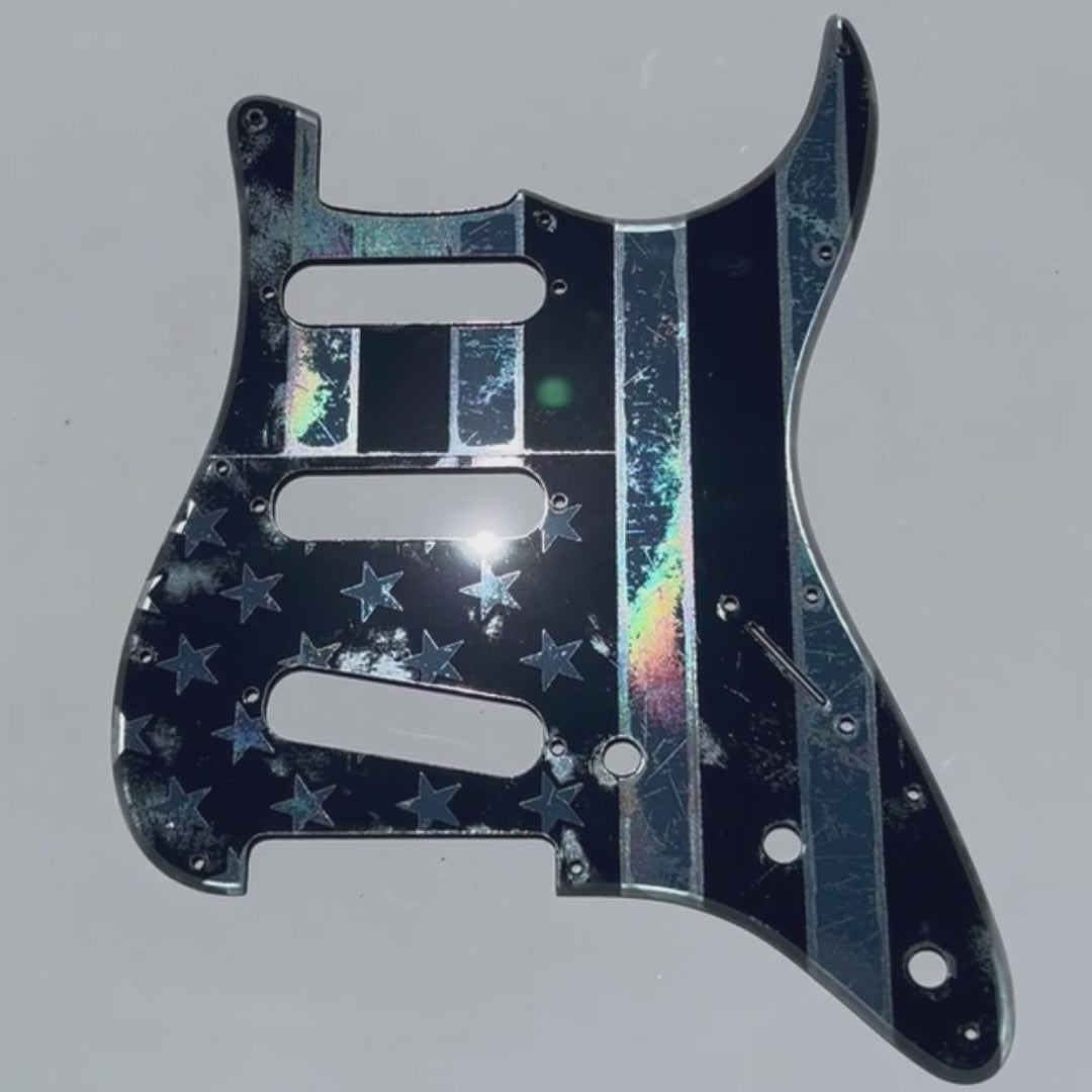 American Flag Pickguard & Free Tremolo Cover in Gun Metal Gray Acrylic Mirror for Fender Stratocaster SSS, HSS, HSH Setups Available