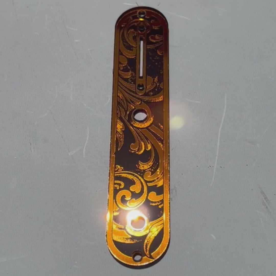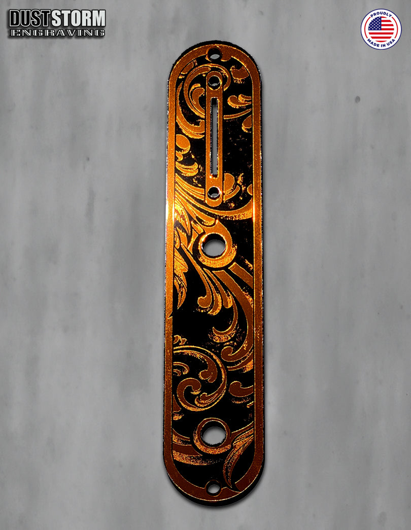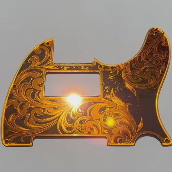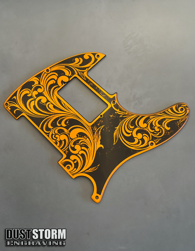 Engraved 8 Hole Pickguard for Fender Telecaster in Burnt Orange Patina Acrylic Mirror American/Mexican Tele Guitar Scratch Plate Standard or Humbucker Cut Available Bundled with matching Toggle Control Plate