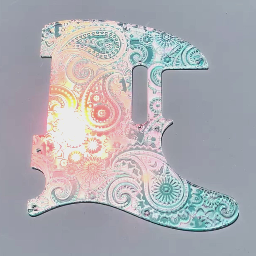 Engraved 8 Hole Paisley Pickguard for Fender Telecaster in Iridescent Rainbow Acrylic Mirror American/Mexican Tele Guitar Scratch Plate Standard or Humbucker Cut Available