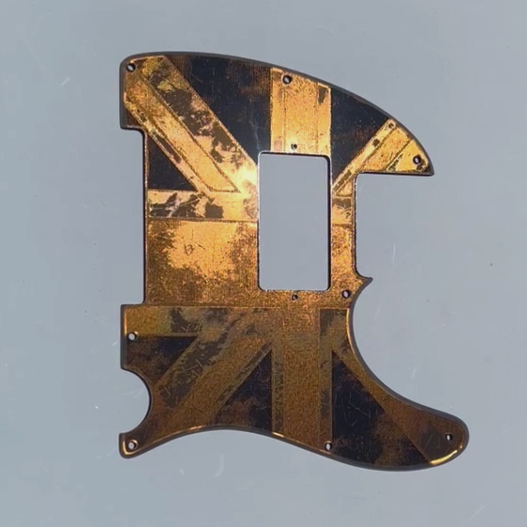 Engraved 8 Hole Pickguard for Fender Telecaster British Union Jack Flag Copper Acrylic Mirror American/Mexican Tele Guitar Scratch Plate Humbucker or Standard Cut Available