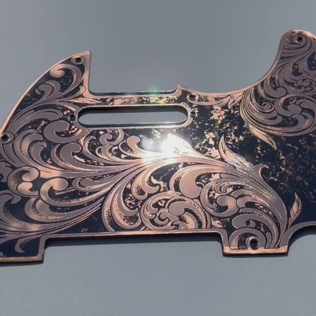 Engraved 8 Hole Pickguard for Fender Telecaster in Copper Acrylic Mirror American/Mexican Tele Guitar Scratch Plate Standard or Humbucker Cut Available