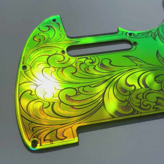 Engraved 8 Hole Pickguard for Fender Telecaster in Iridescent Gold Acrylic Mirror American/Mexican Tele Guitar Scratch Plate Standard or Humbucker Cut Available