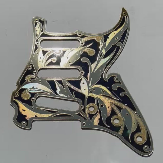 Engraved Layered Pickguard & Free Tremolo Cover in Acrylic Gold Mirror with Glossy Black Design #3 for Fender Stratocaster HSH, HSS, SSS Setups Available