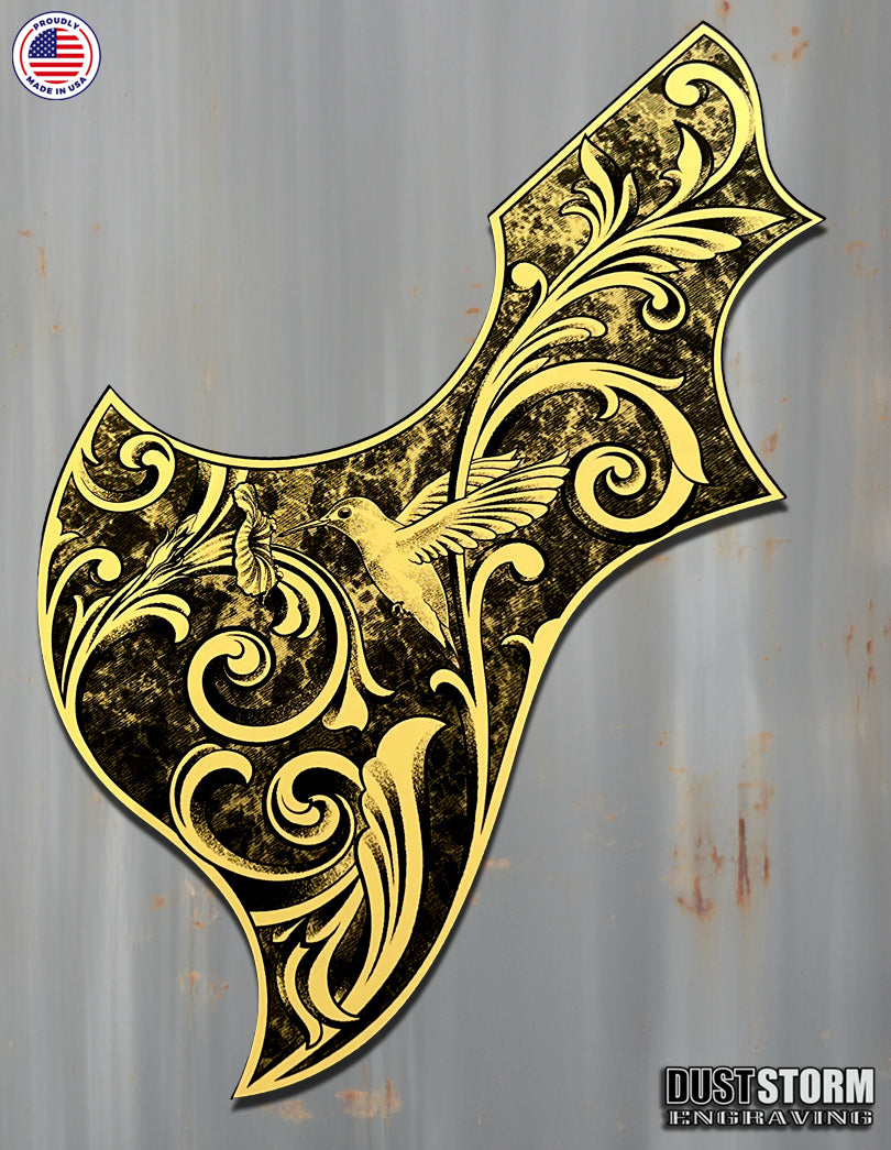 Gibson Hummingbird Style Acoustic Guitar Pickguard – Acrylic Mirror, Laser Engraved, Gold