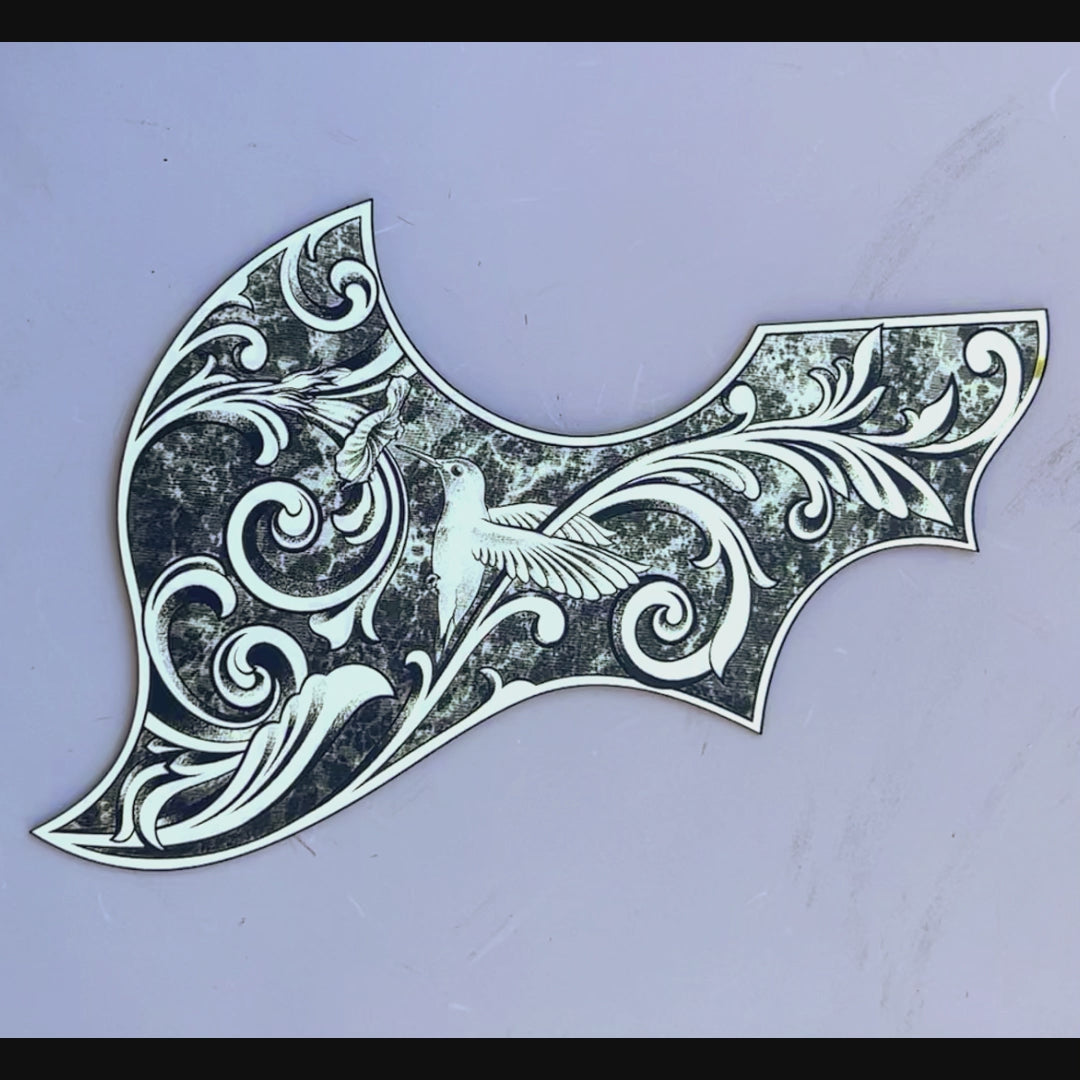 Elevate your acoustic guitar with this stunning Gibson Hummingbird-style pickguard, crafted from high-quality acrylic mirror for a bold, reflective finish. Designed to fit Gibson Hummingbird acoustic guitars, this pickguard combines precision engineering with artistic flair.