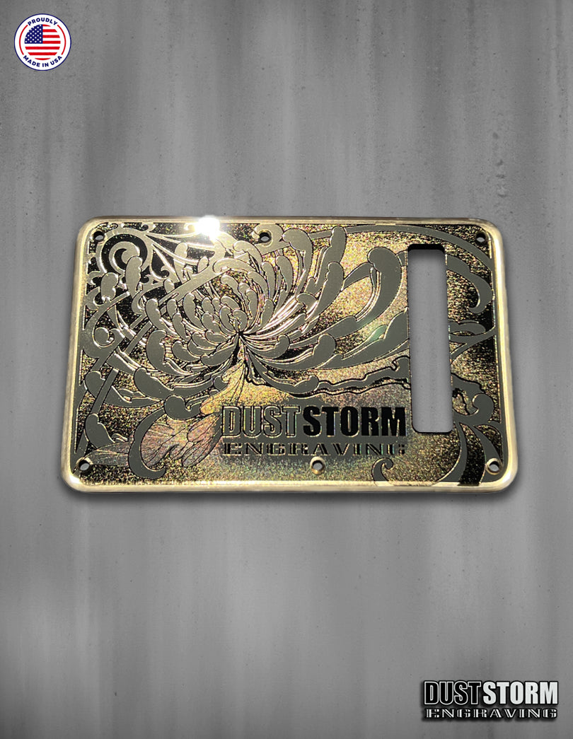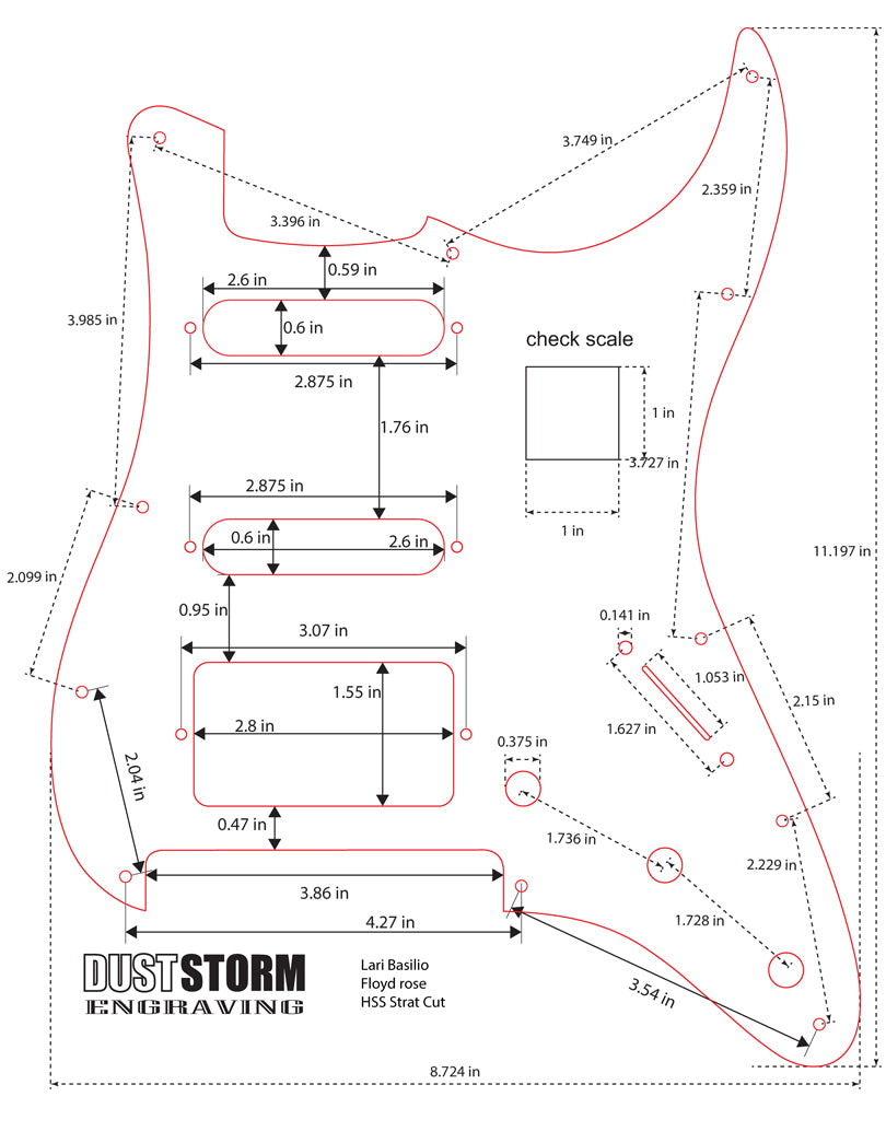 This Lari Basilio Pickup Set Stratocaster pickguard and tremolo cover laser cut for a precise fit, reverse-laser engraved and painted with our human generated design on acrylic mirror. The laser engraved artwork has a three-dimensional depth that no printed design can match, and the clear acrylic top layer protects the art from wear and tear. The edges are router beveled, and hand sanded for that frosted glowing edge. Lastly the 11 mounting holes are countersunk. Our custom pickguards are the perfect upgrade, replacement, or finish for your guitar build. Blending modern technology with hand craftsmanship, Dust Storm Engraving pickguards are sure to shine with their highly reflective surface and frosted edge!